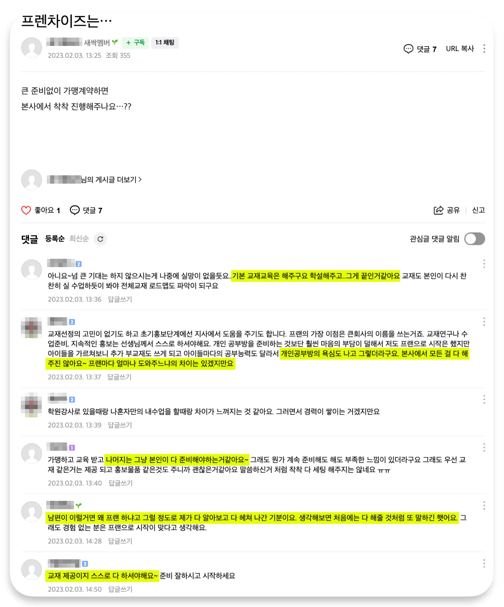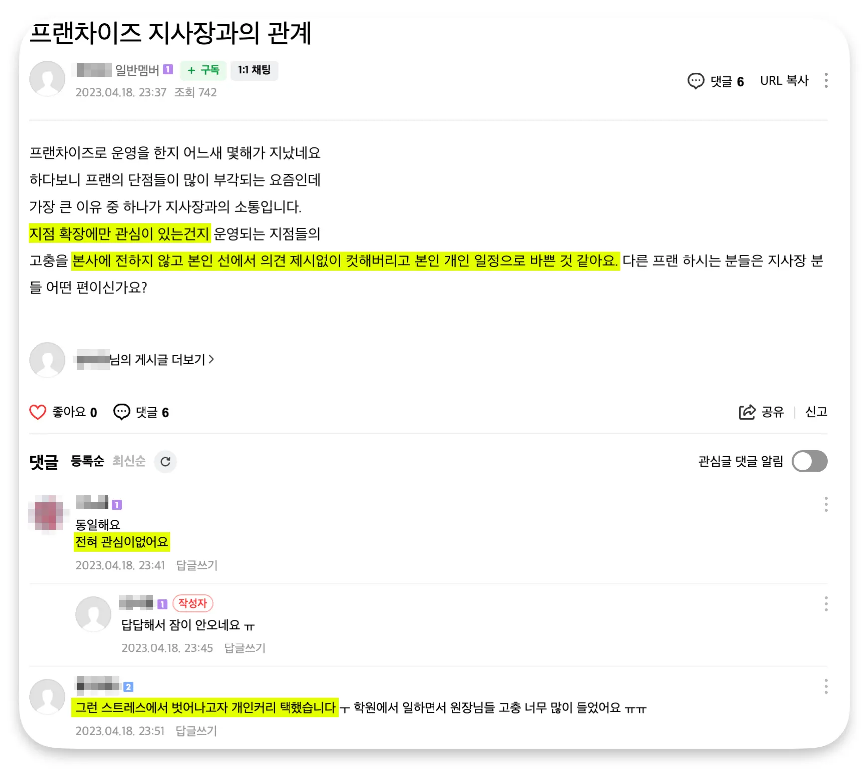 초기 회원 00명 만들어 준다, 아무런 경력과 경험이 없어도 성공하게 해준다는 장밋빛 약속을 믿고 가맹했는데, 계약 후 본사와 지사는 나에게 관심이 별로 없습니다.