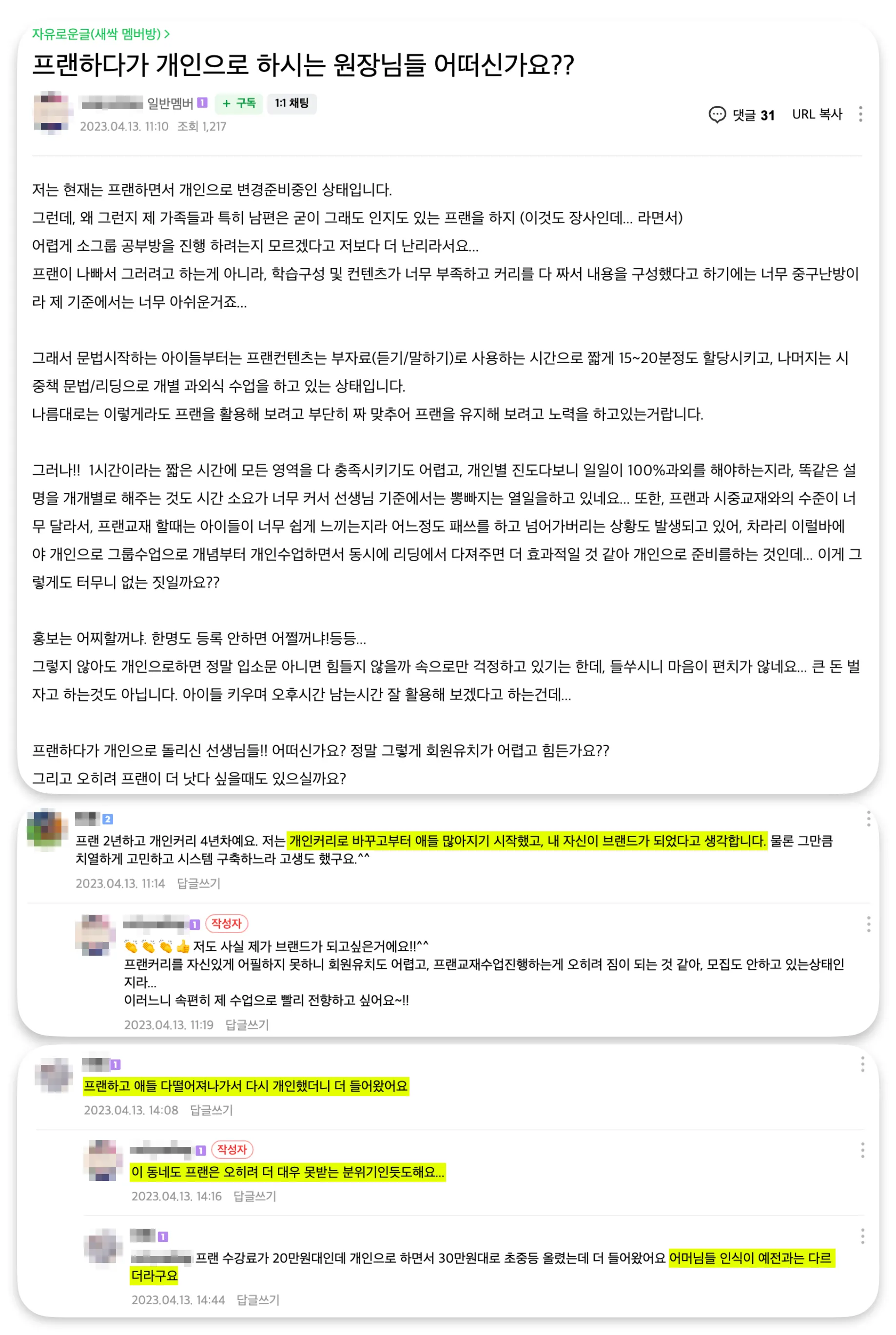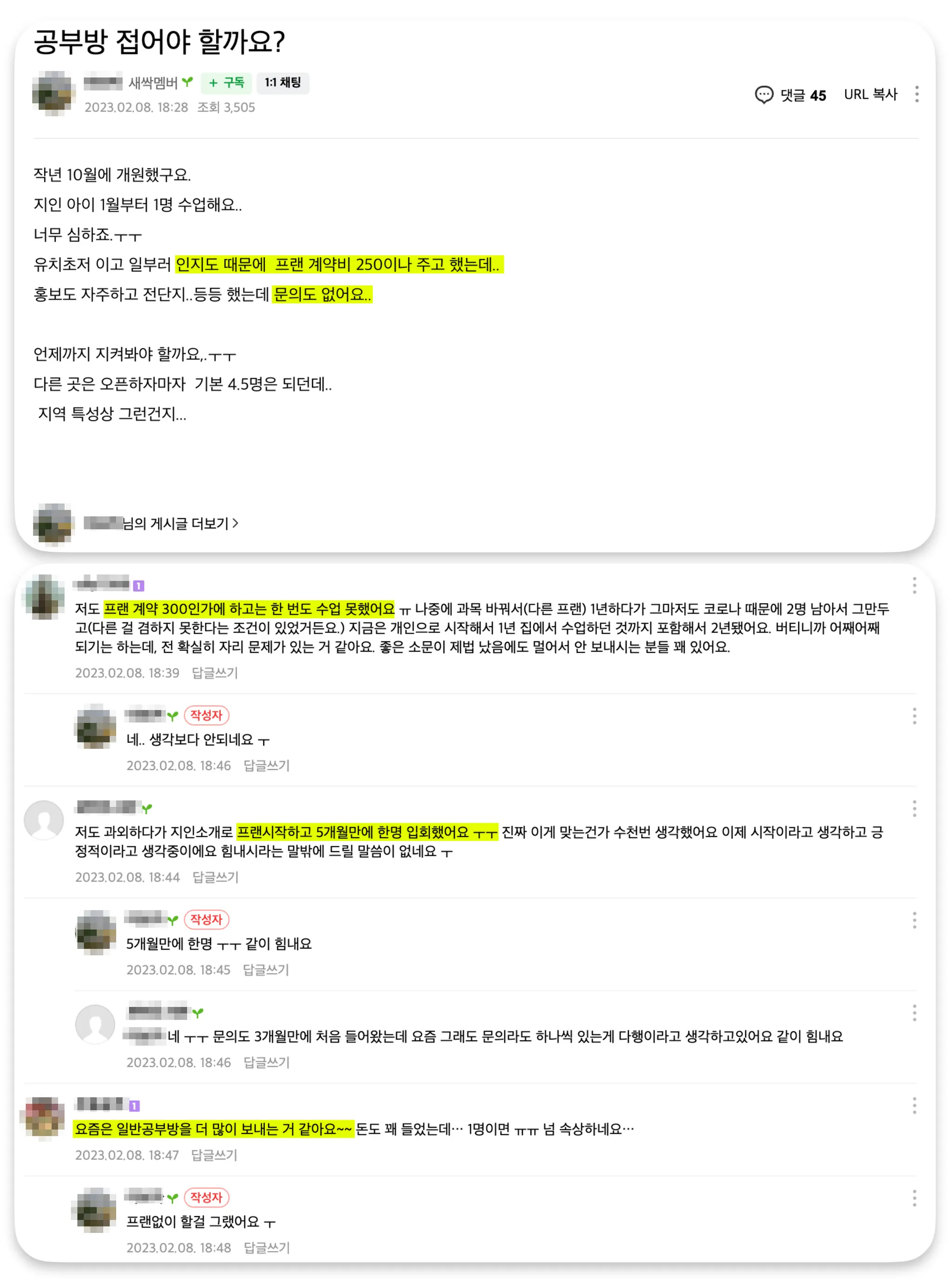 출처 : 네이버카페, “성공하는공부방운영하기”, https://cafe.naver.com/makegoodstudy