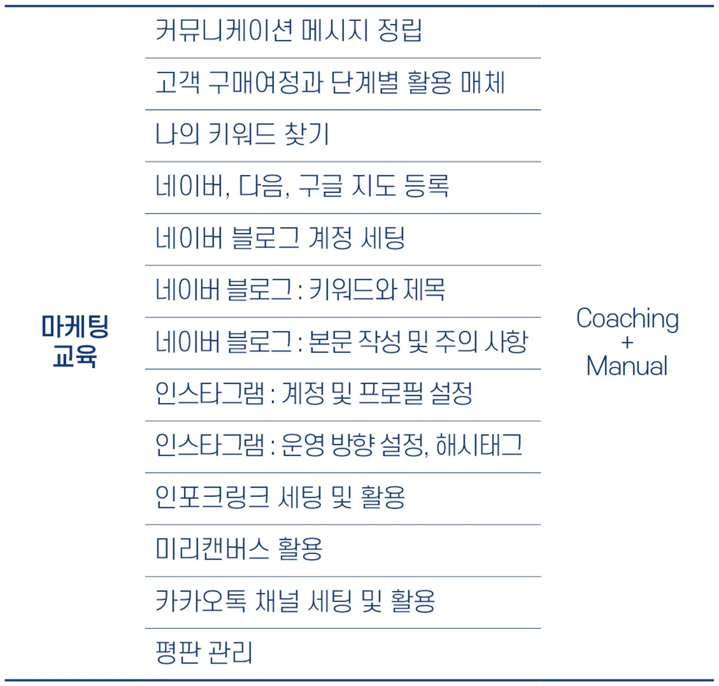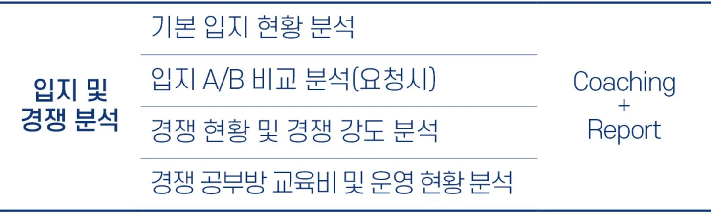 모든 항목은 개별 원장님의 지역/커리큘럼, 니즈와 경력 등에 맞춰 1대1 맞춤으로 진행합니다.
