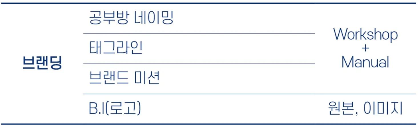 원장님의 교육 철학, 공부방의 명칭, 비전, 가치제안, 슬로건, 타깃 고객 정의, 커뮤니케이션 메시지, 온라인 홍보 매체 활용, 온오프라인 홍보물의 톤앤매너, 학부모 상담, 이 모든 것들이 일관되고 조화롭게 고객에게 전달되어야 성공하는 공부방이 됩니다.