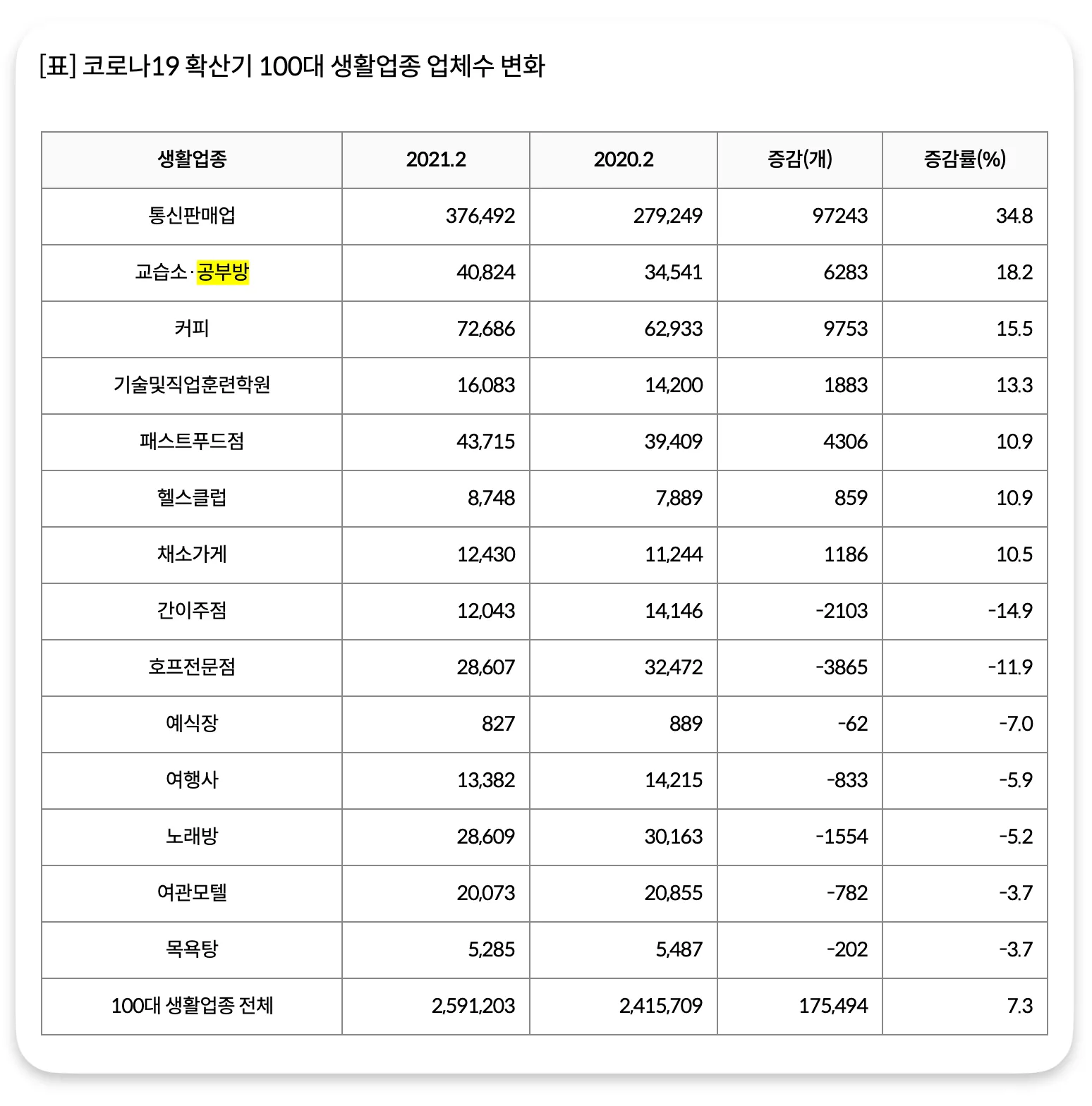 국세청 통계에 따르면, 코로나 확산기에도 카페보다 공부방이 더 많이 생긴 것으로 나타났습니다.